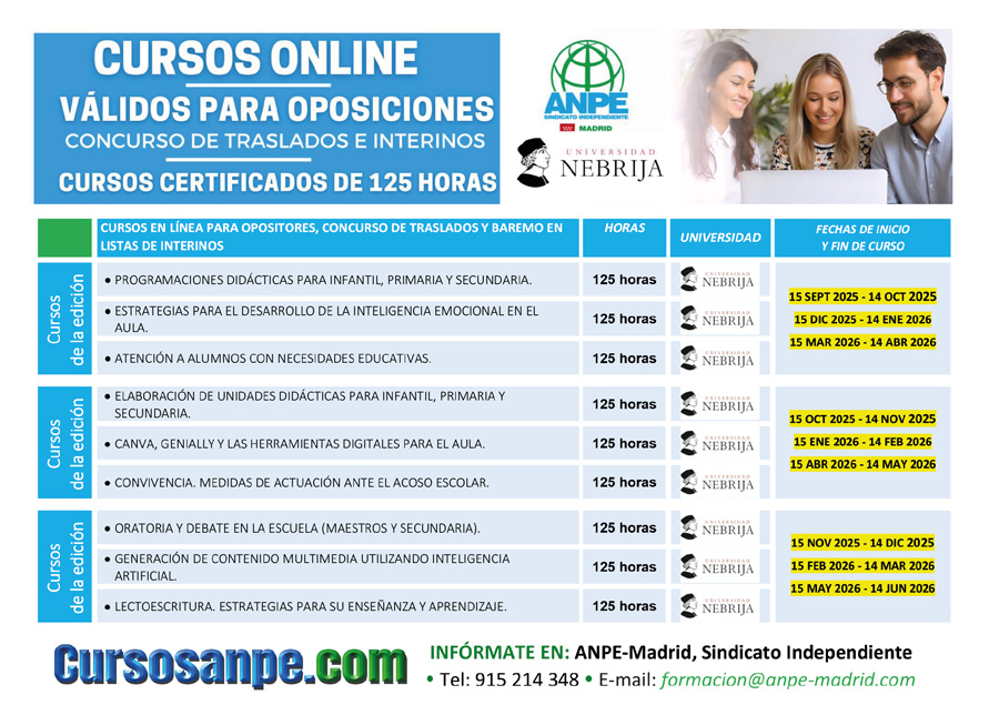 • Cursos ONLINE Válidos para Oposiciones Septiembre-Diciembre 2025